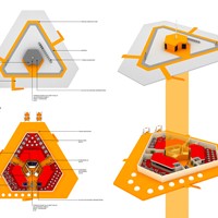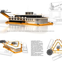 Unit serving as a base for houseboats stationed on oil rigs. Conceptual design involves the creation of recreational functions on four levels. Student project - 2011